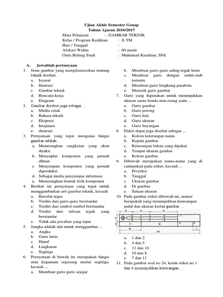 Contoh soal gambar teknik otomotif kelas 10 semester 1. Terima kasih sudah berkunjung, jangan lupa untuk bookmark contoh soal gambar teknik otomotif kelas 10 using ctrl + d (pc) atau command + d (macos). Kertas gambar yang memiliki ukuran 420x297 mm. Contoh soal pkn kelas 10 semester 1 dan semester 2 beserta kunci jawaban nya lengkap dan terbaru kurikulum 2013 soal. Nomor berapakah yang menunjukkan keterangan judul dan ukuran kertas gambar. Saldamedia soal gambar teknik kelas x tsm. Kerjakanlah setiap soal secara berurutan. Pilihlah salah satu jawaban yang kamu anggap benar ! Mapel gambar teknik merupakan salah satu mapel produktif jurusan tsm dan tkr pada kelas 10. Contoh soal dan jawaban gambar teknik mesin kelas 10. 30 soal dan kunci jawaban uas gambar teknik mesin kurikulum 2013 teknik pemesinan. Pure art adalah cabang seni rupa yang pembuatannya terlepas dari nilai fungsi guna, hanya mementingkan keindahan saja. 20201222 soal smk tsm gambar teknik kelas x wpilgan karusel sebelumnya karusel berikutnya.