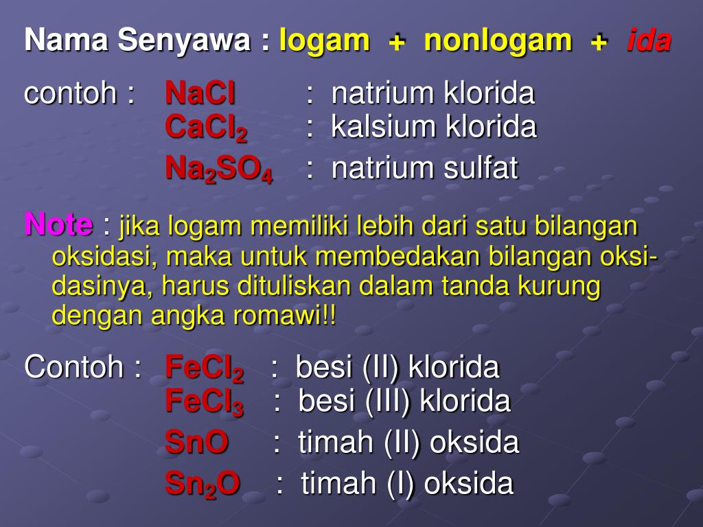 Fisik atau kimia dari logam dan senyawa pengotor di dalam bijih. Tata nama senyawa kimia setiap hari selalu ditemukan senyawa baru,. Senyawa ini umum digunakan dalam pengolahan limbah, produksi air . Nama saya sebagai penulis/pencipta dan pemilik hak cipta. Tata nama kimia disusun berdasarkan aturan iupac (international union of pure and applied chemistry).